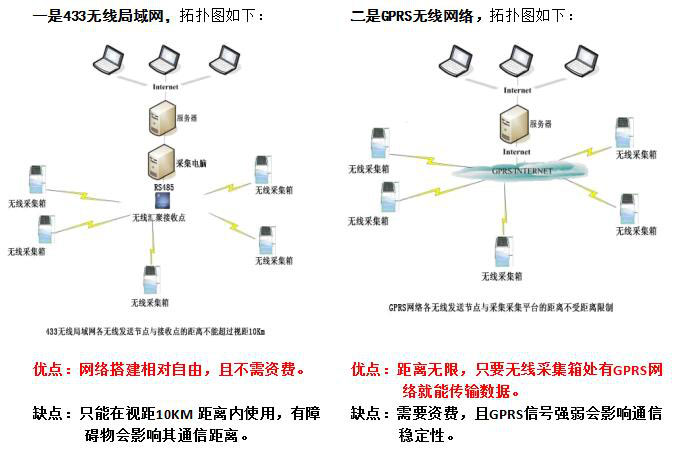 | GPRS無線網絡 | 移動互聯網 | 每個箱子需要一張手機SIM卡,需要資費。只要有GRPS網絡就可實現通信 |